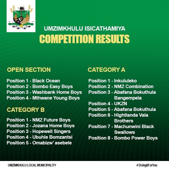 UMZIMKHULU ISICATHAMIYA COMPETITION RESULTS..